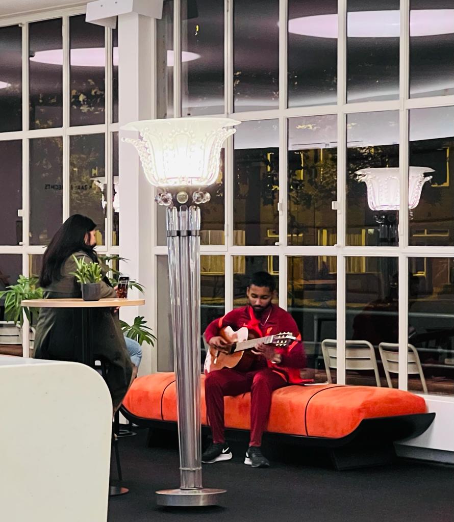 Together with the theater group "Wat We Doen," I performed the opening act at the Voyé. A classical guitar piece combined with spoken word surprised the audience, as they did not realize I was part of the show. It led to astonished faces and unforgettable moments. I have had the opportunity to perform this act in almost every theater. It has proven to be a unique experience for me.